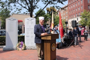 After a presentation of the colors by Disabled American Veterans Hardware City Chapter 8, Terry Crescimanno, commissioner with the City New Britain Veterans Commission sang The National Anthem. An invocation was then provided by Rev. Michael T. Casey of St. Francis of Assisi Church. Casey asked God to keep those who made the ultimate sacrifice alive in the hearts and minds of their loved ones and to welcome them into his kingdom of justice and peace.